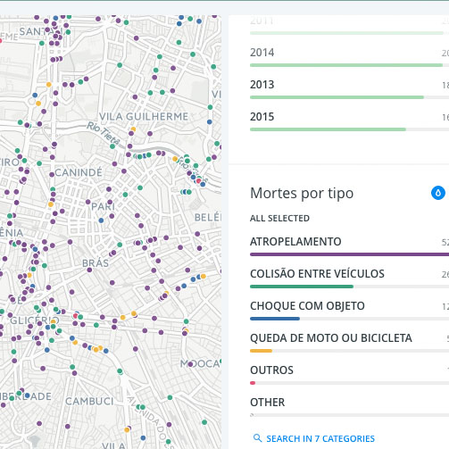 Mapas e gráficos interativos que permitem analisar as mortes no trânsito em São Paulo.